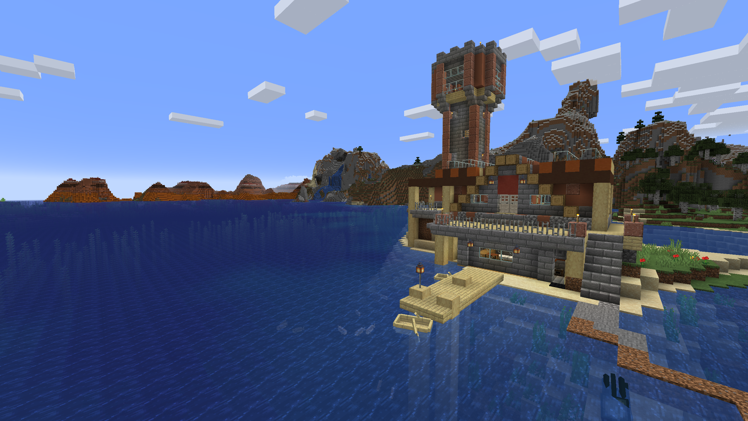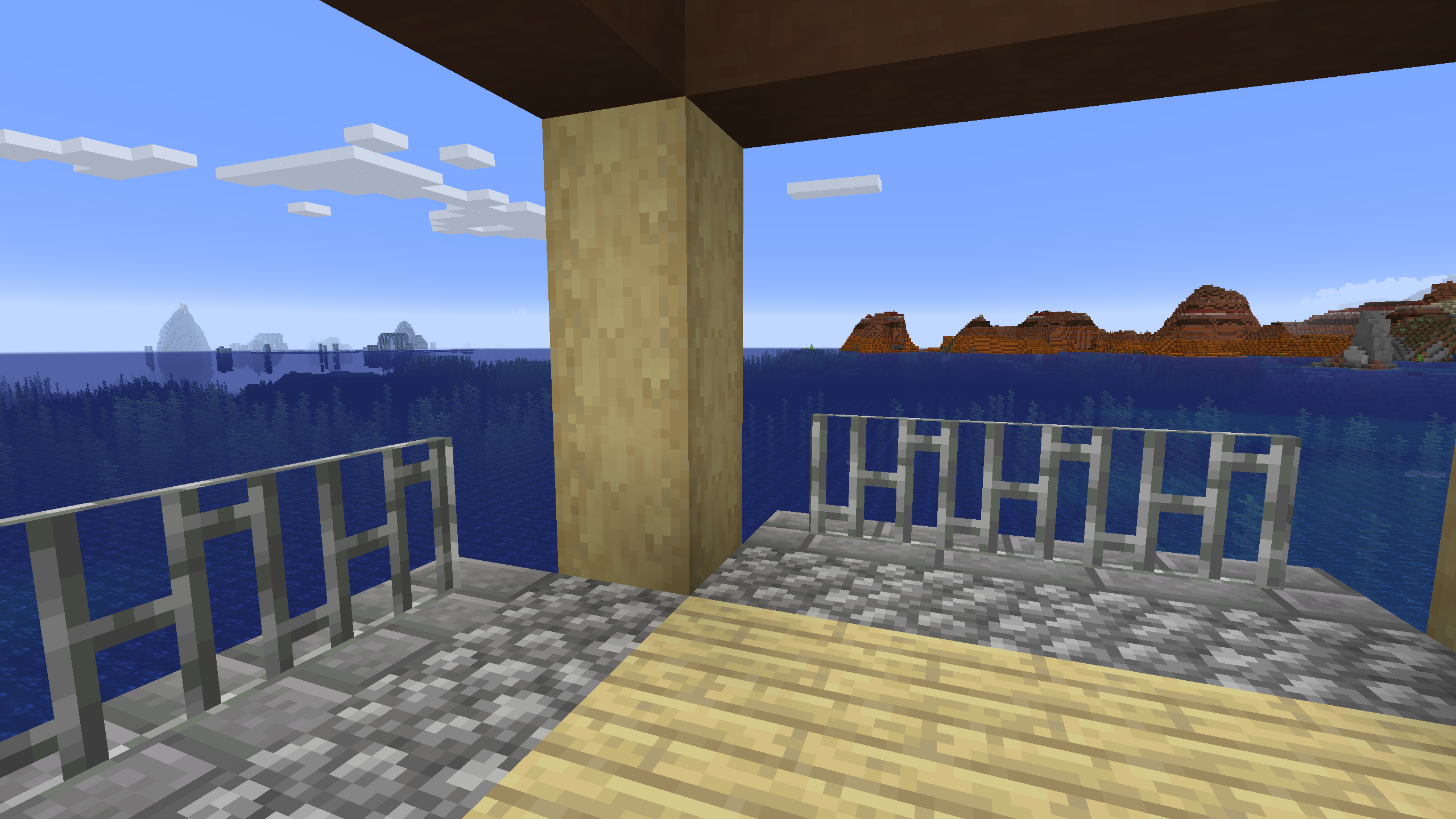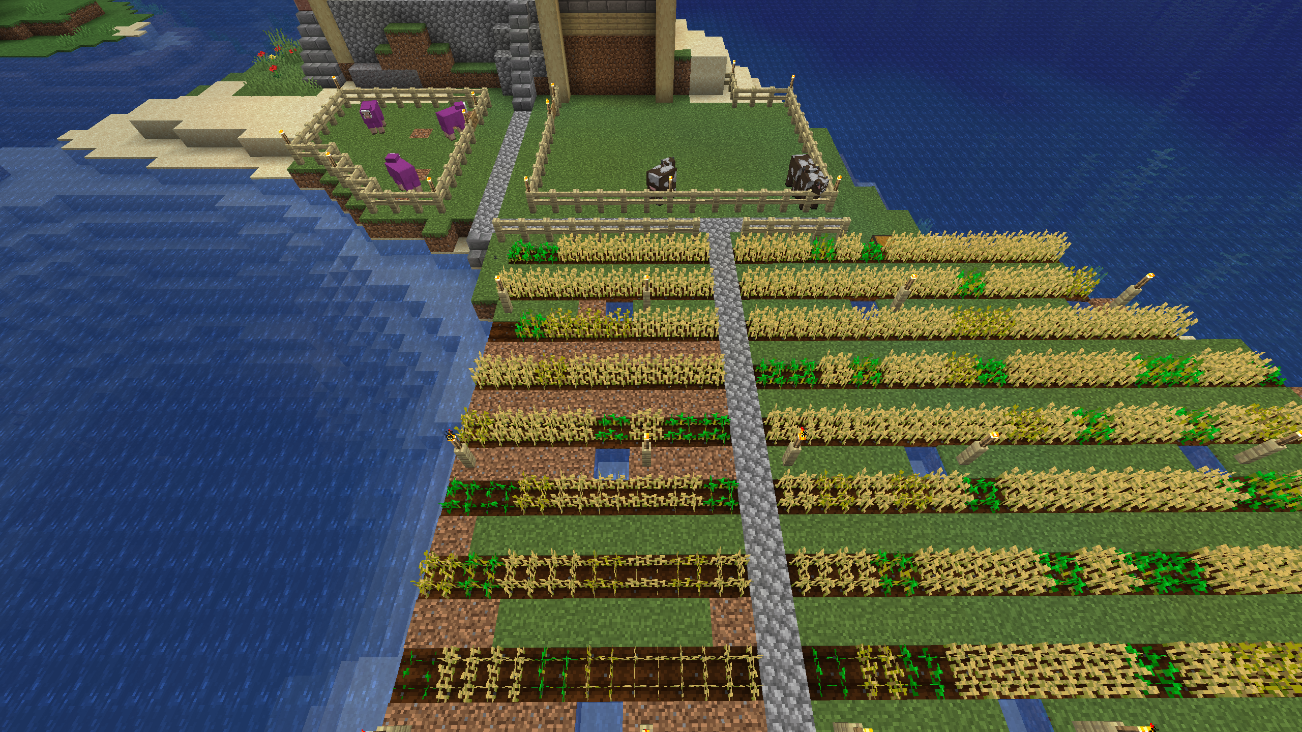 I think the lighthouse came out pretty good, and there are some nice views from the porch. I added enough wheat and sheep to make this base very pleasant to survive in.