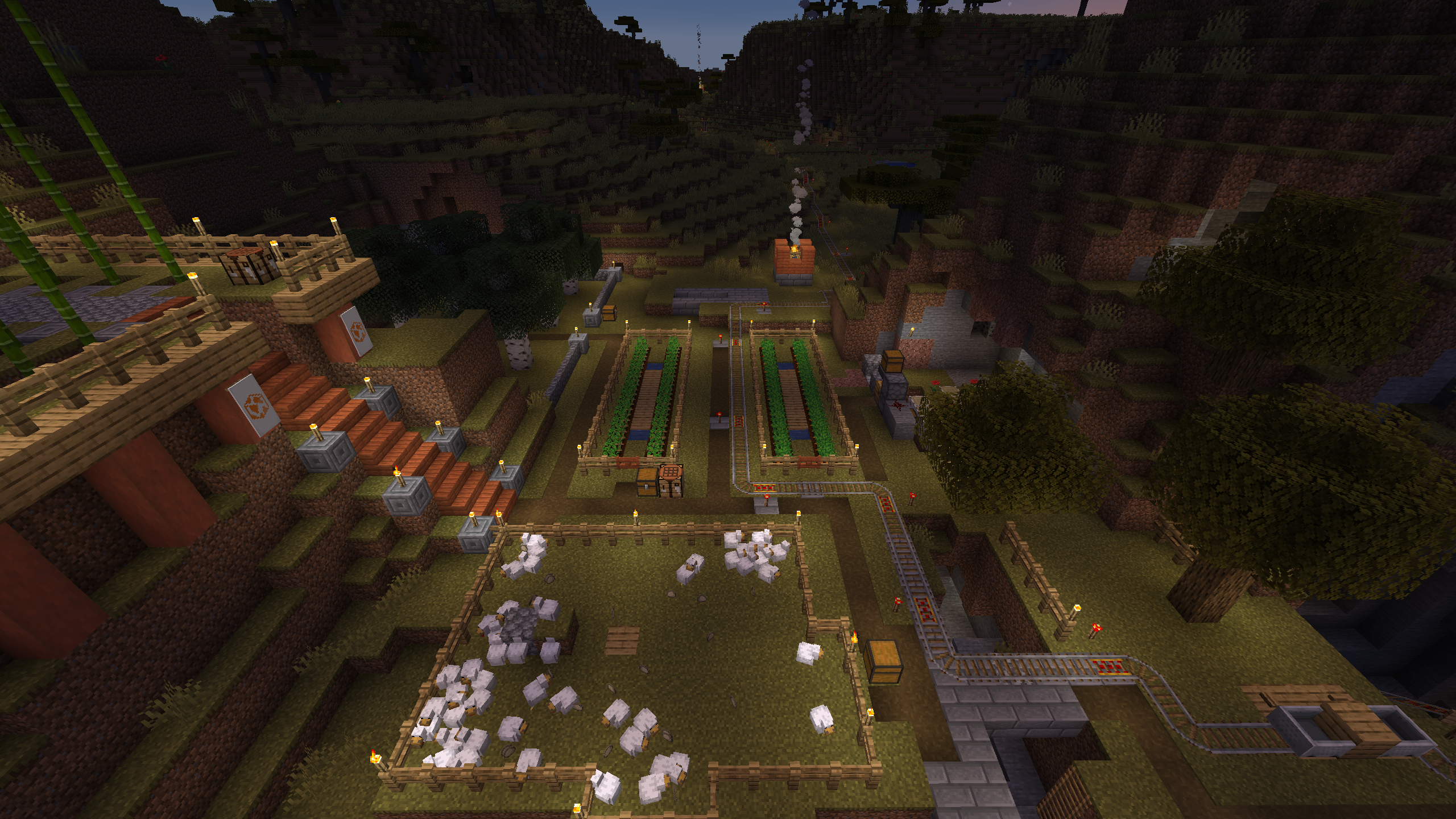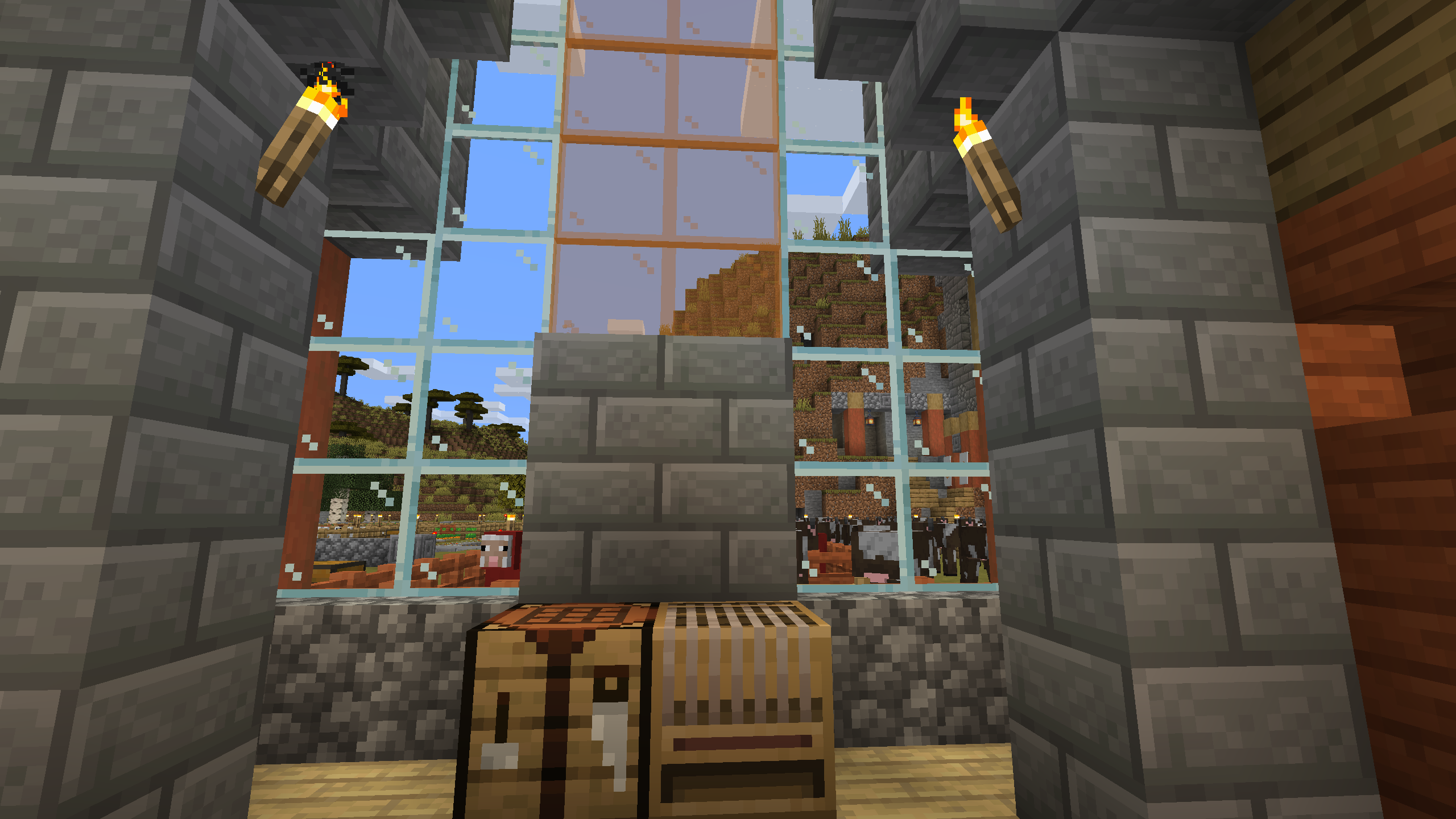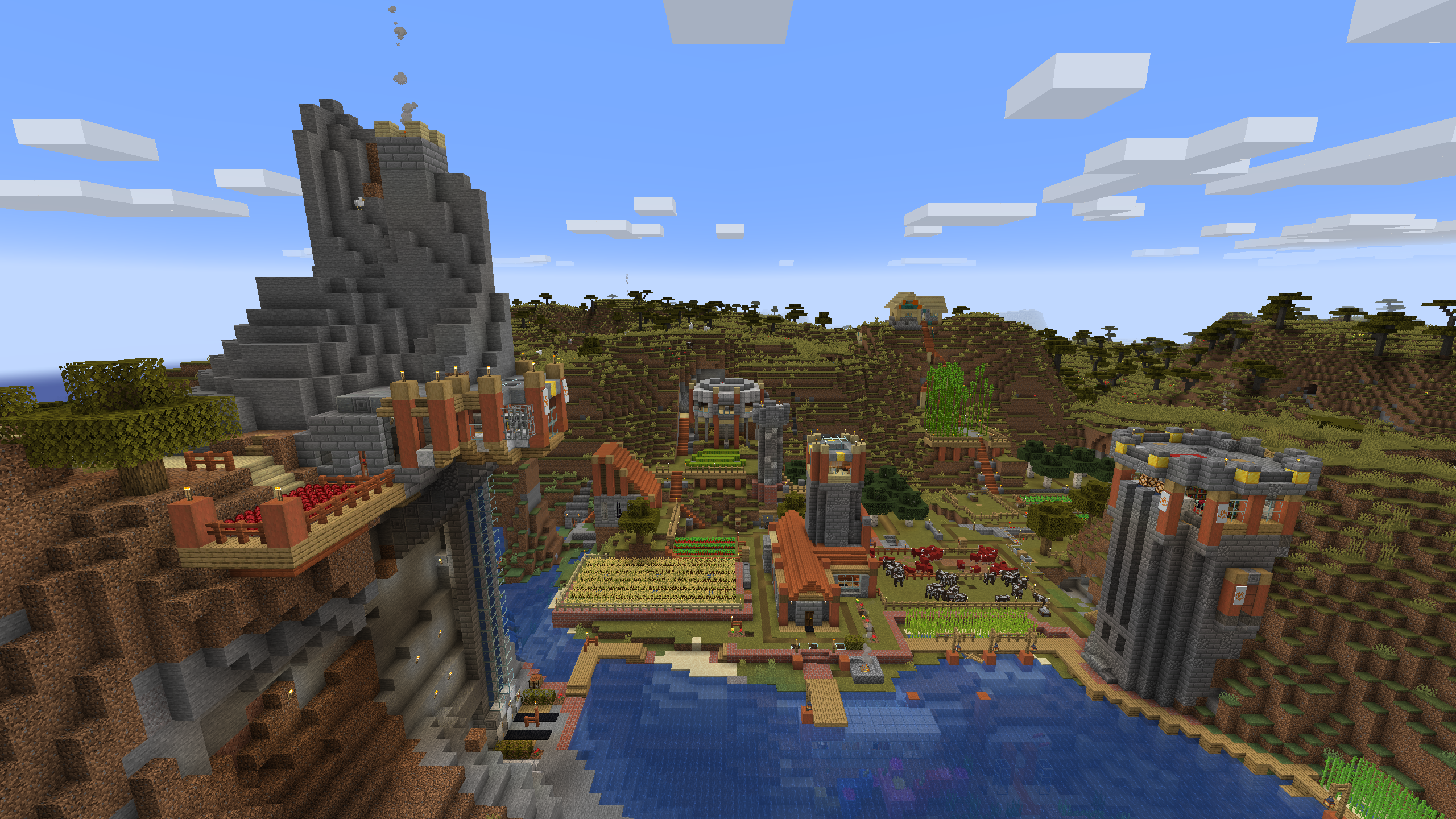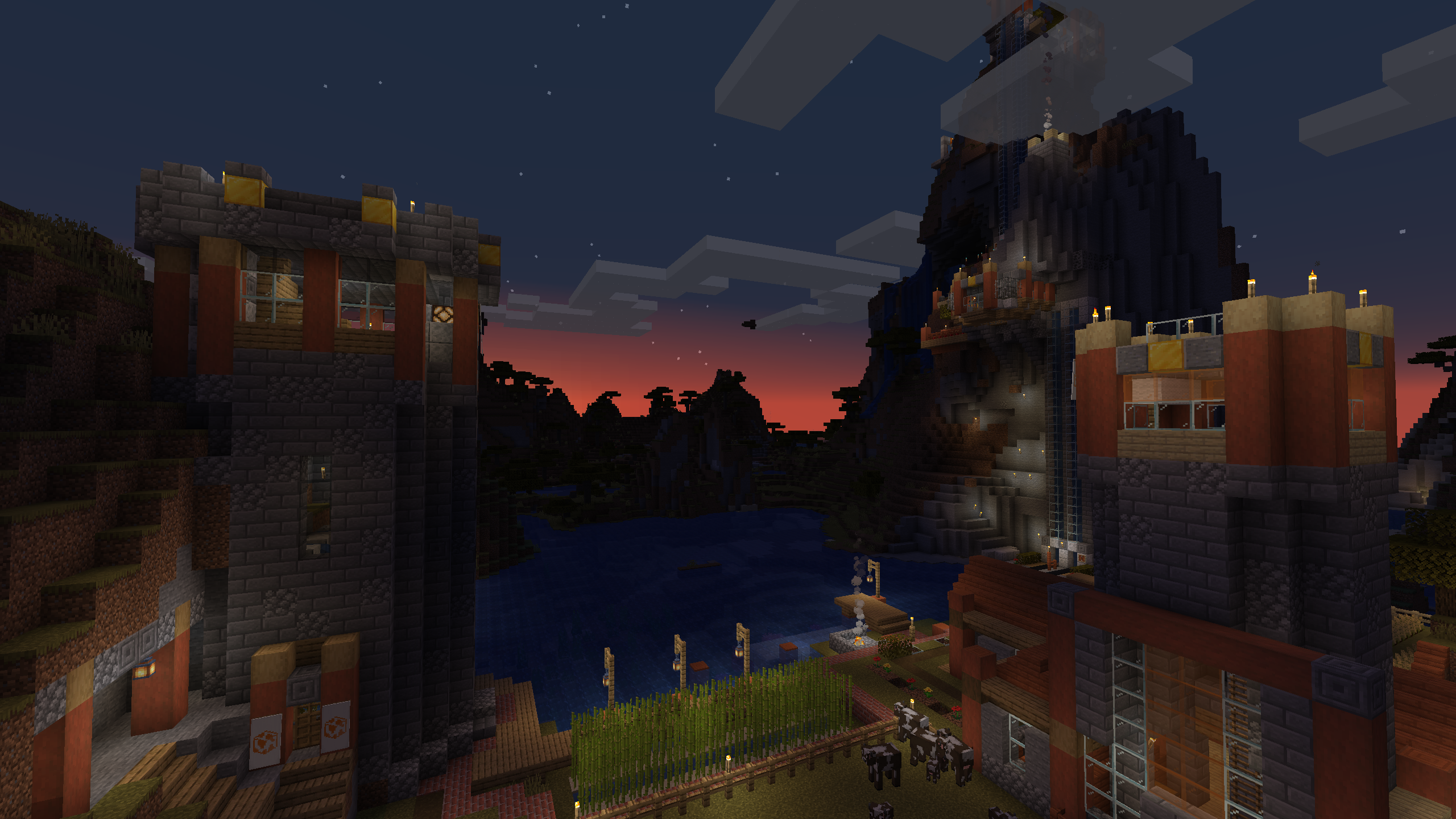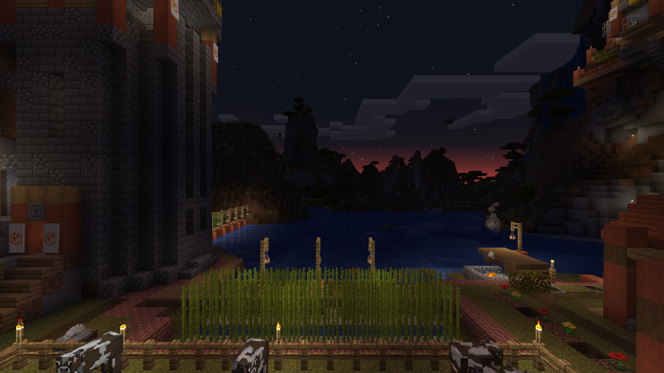 The Shattered Cove Settlement is probably the most advanced and self sufficient base in this world. I like its aesthetics, with stripped Acacia posts anchoring cobble stone and stone brick foundations and walls. I don't hang out here much, mostly because its Nether chunks are pre-1.6, but the Shattered Cove will always be one of my favorite bases.