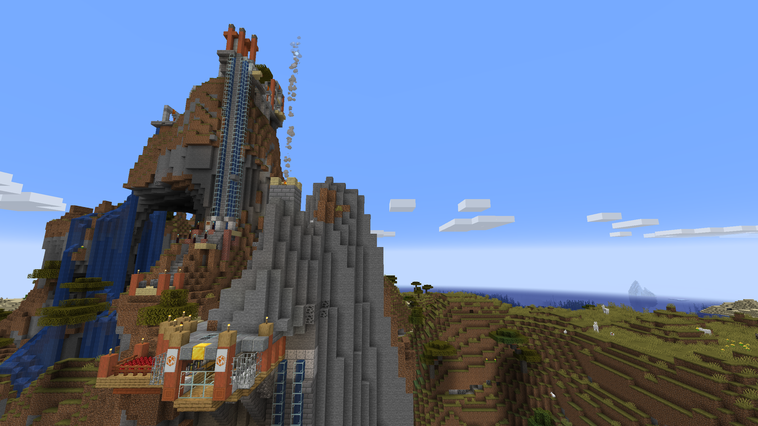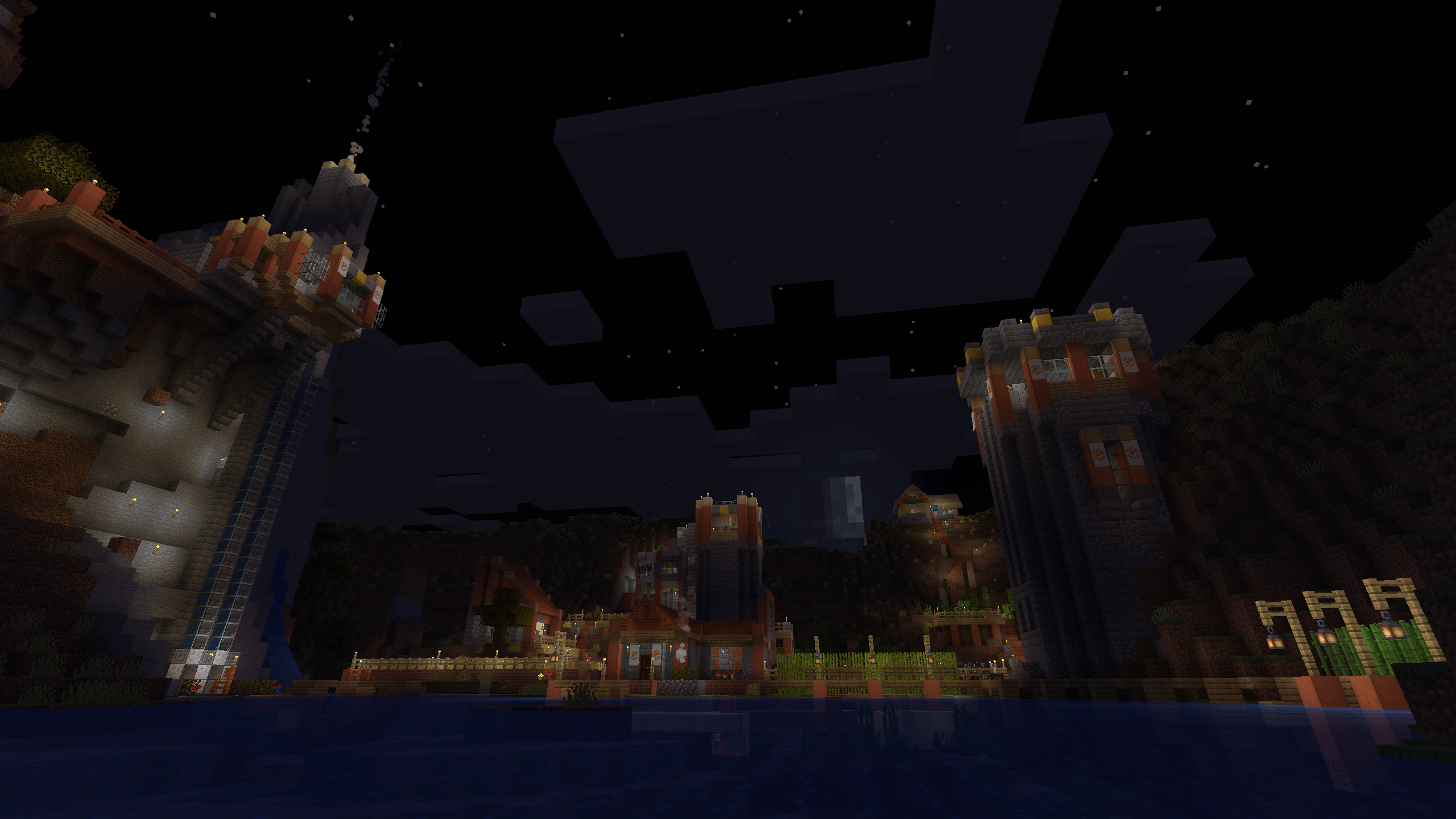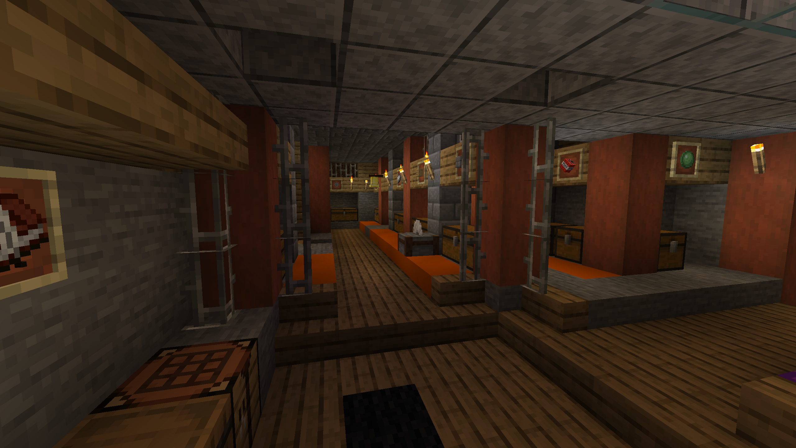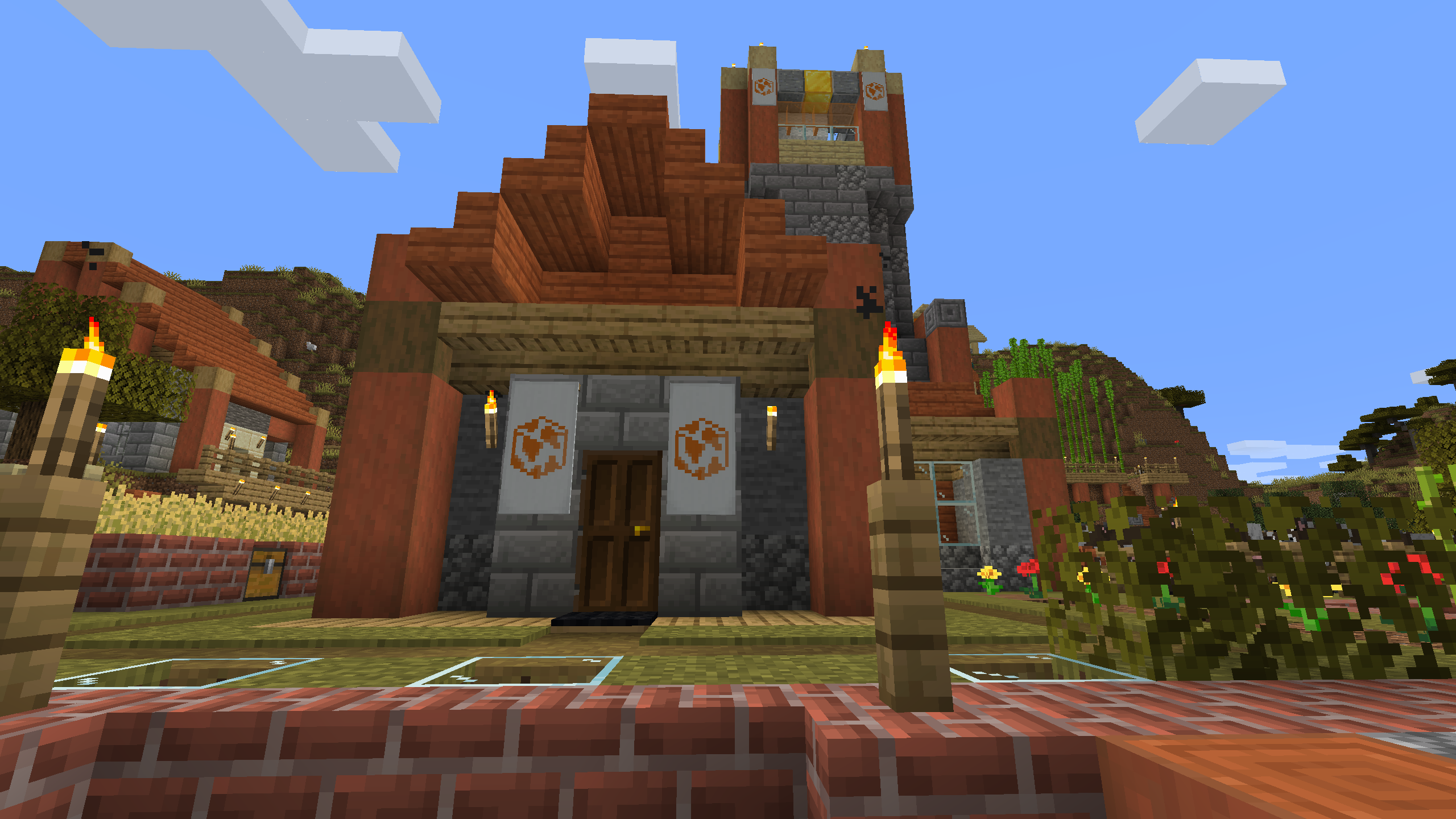 The Shattered Cove Settlement is probably the most advanced and self sufficient base in this world. I like its aesthetics, with stripped Acacia posts anchoring cobble stone and stone brick foundations and walls. I don't hang out here much, mostly because its Nether chunks are pre-1.6, but the Shattered Cove will always be one of my favorite bases.
