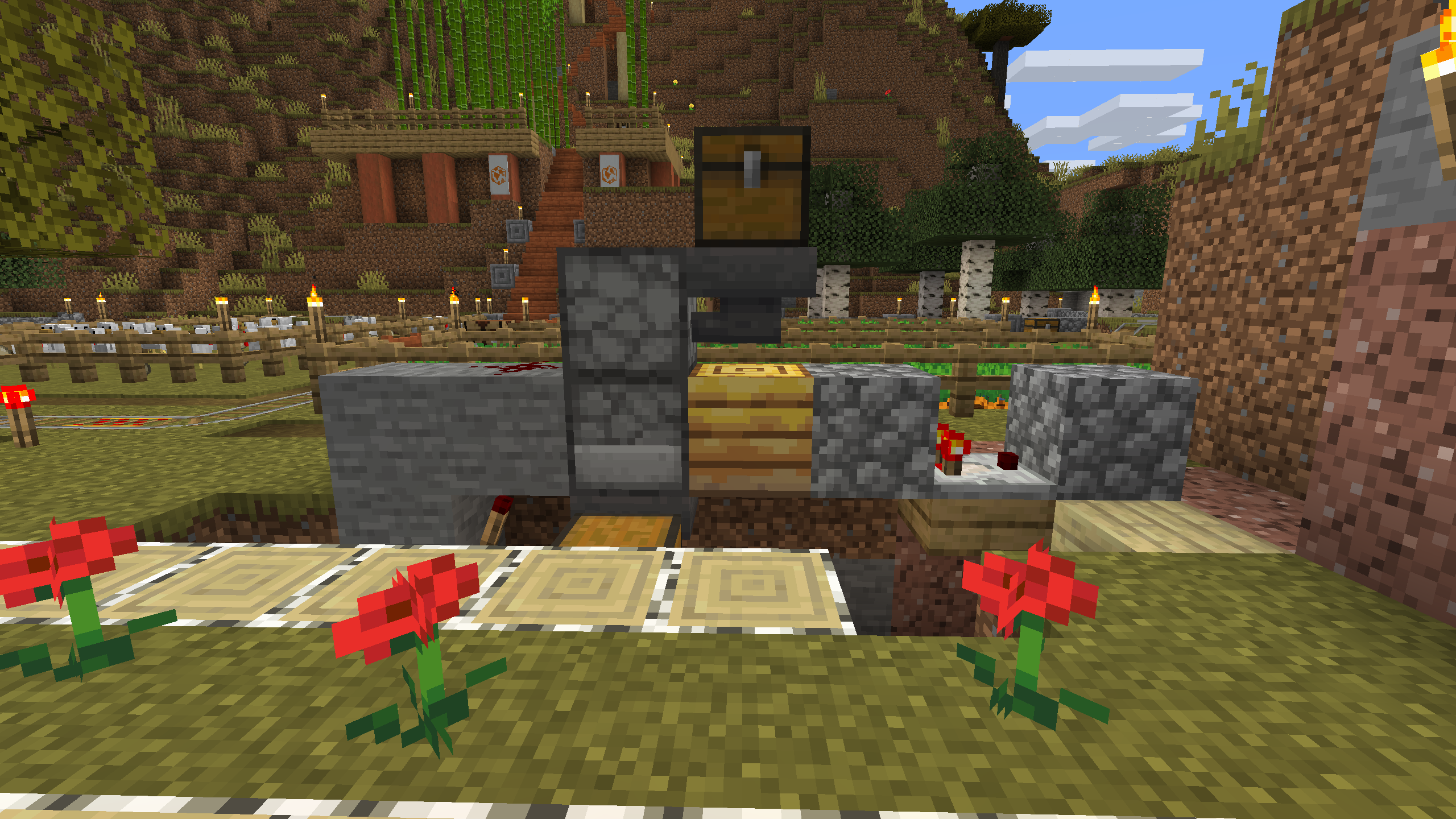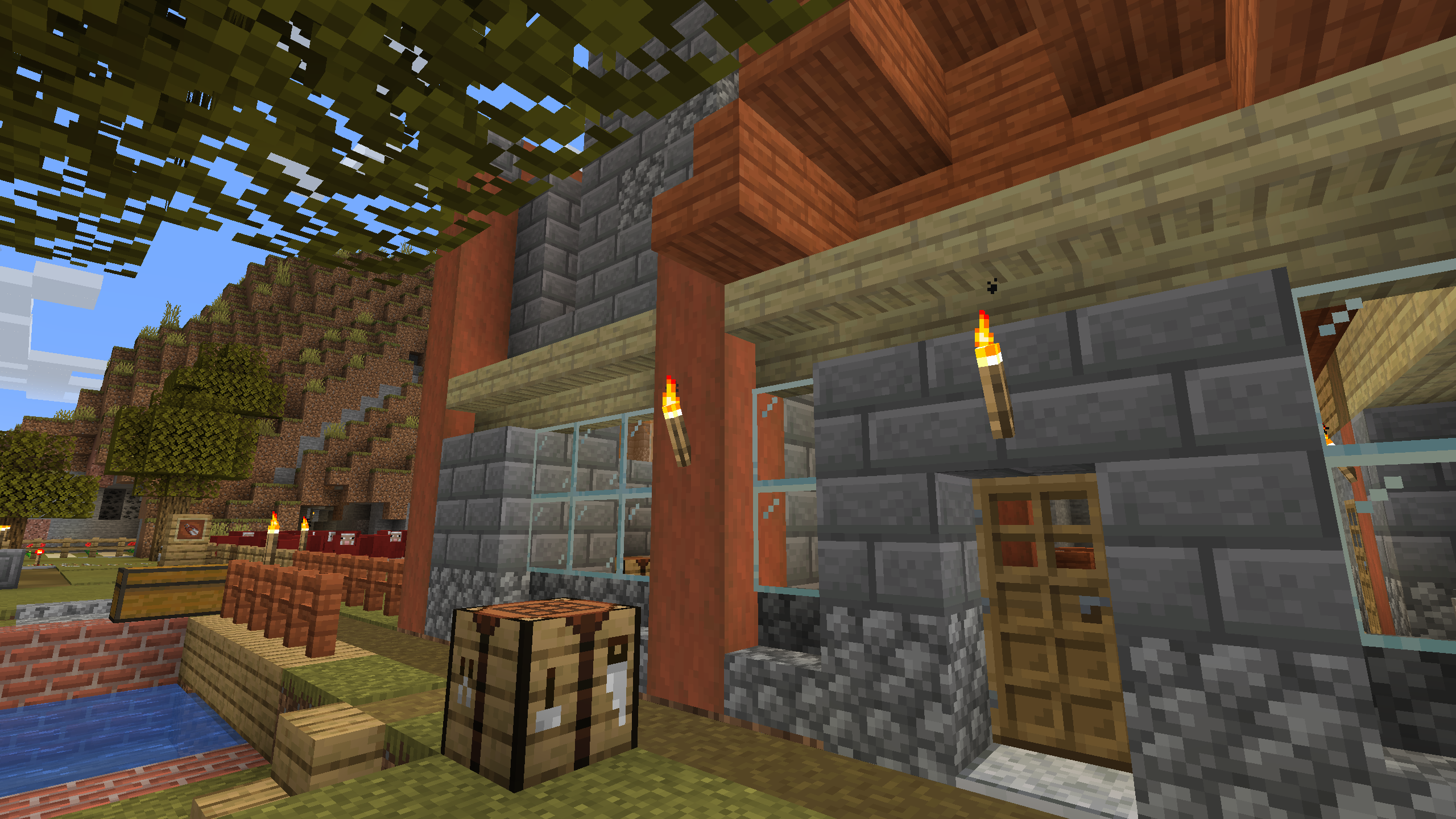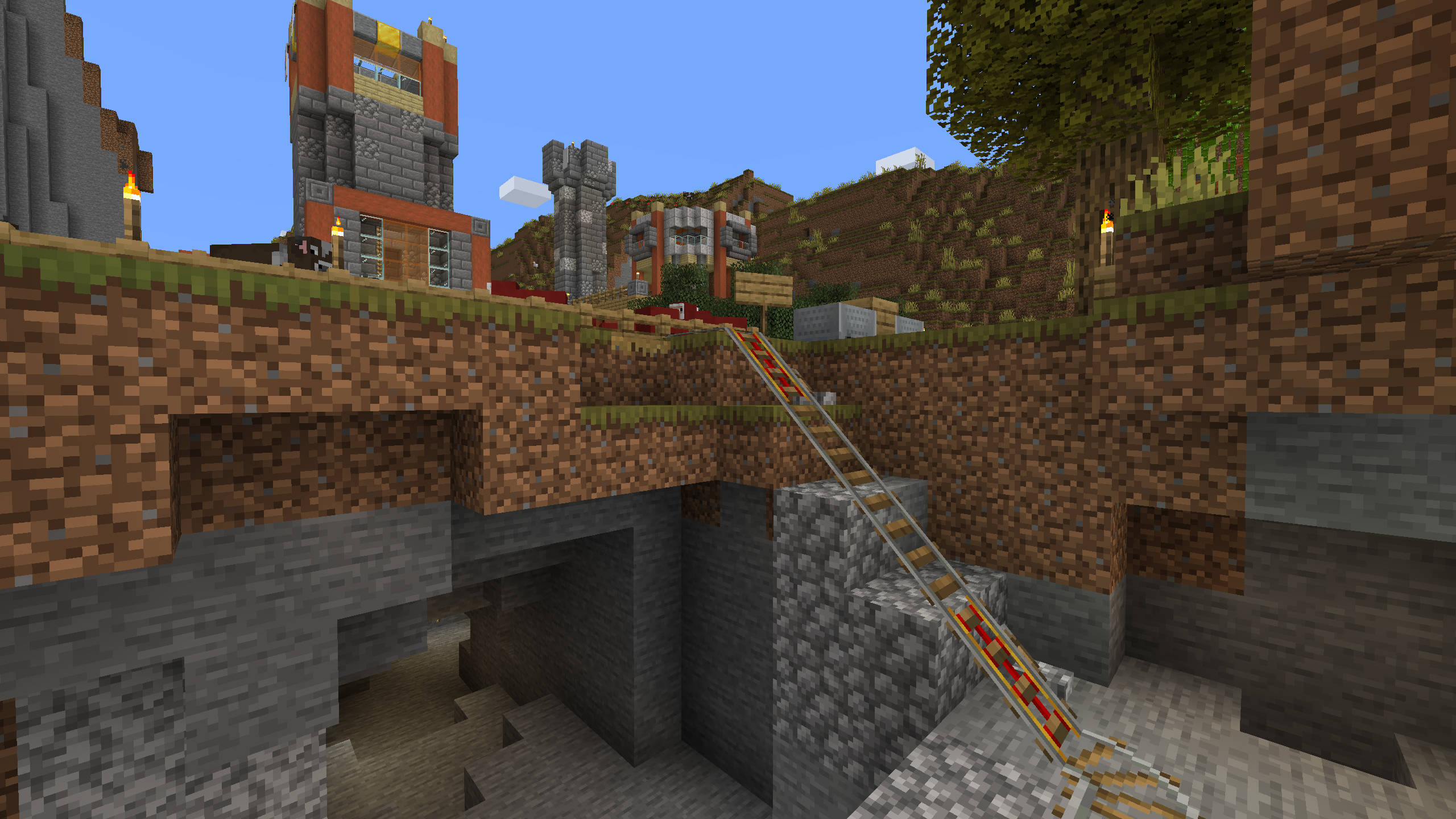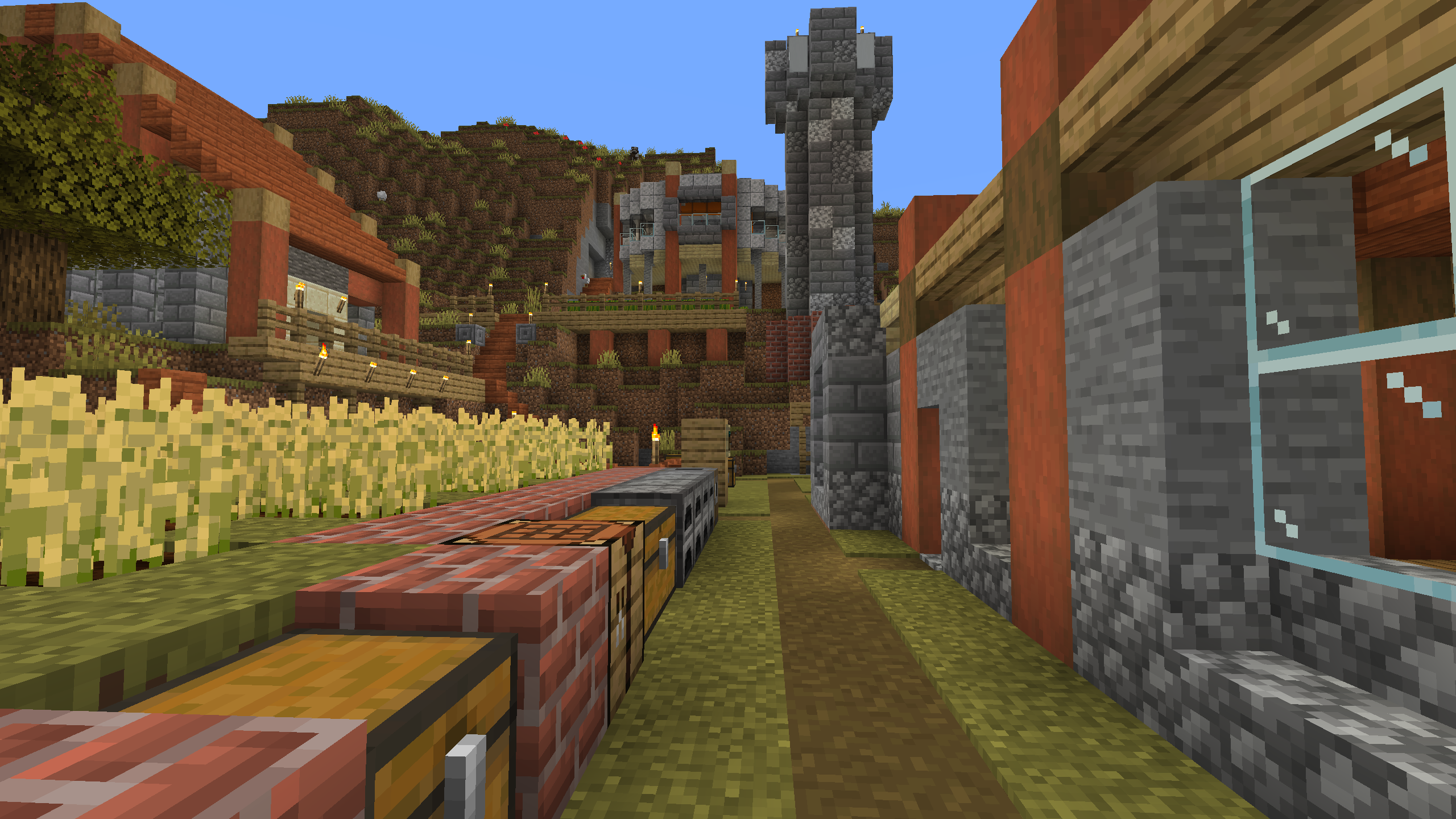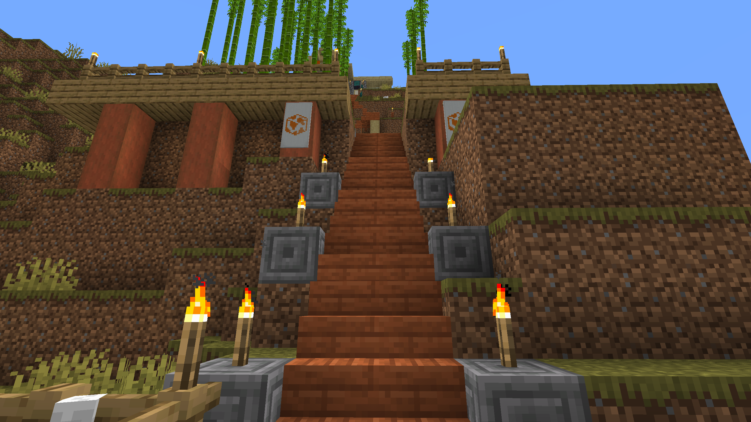 The Shattered Cove Settlement is probably the most advanced and self sufficient base in this world. I like its aesthetics, with stripped Acacia posts anchoring cobble stone and stone brick foundations and walls. I don't hang out here much, mostly because its Nether chunks are pre-1.6, but the Shattered Cove will always be one of my favorite bases.
