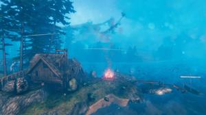 So .. awkwardly, it turns out that Edgemere was kind of far from the edge of Valheim. I remedied this by taking a boat out even further, and founding .. Rimehelm. This place is nice and remote. Unless there's some land right on the edge of the map, this has to be as far west as you can go.
