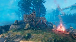 It's very rustic. There wasn't a swamp nearby so it's all wood and bronze-tier stuff. I was surprised how high you can build with just core wood though. The inside came out pretty well.