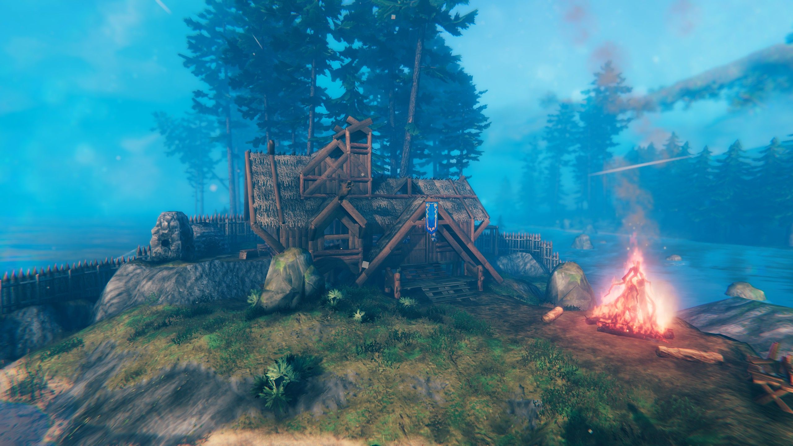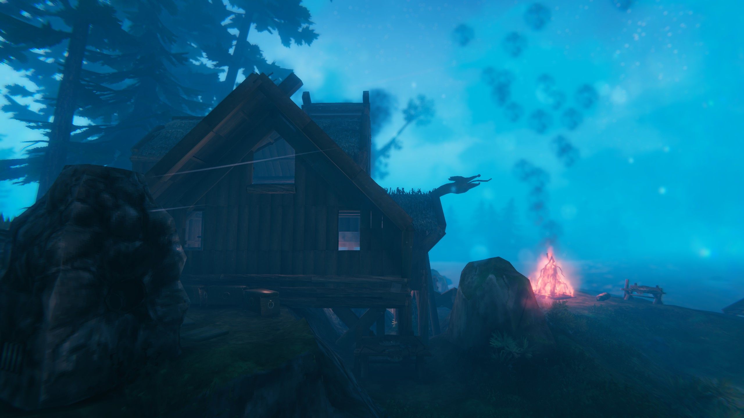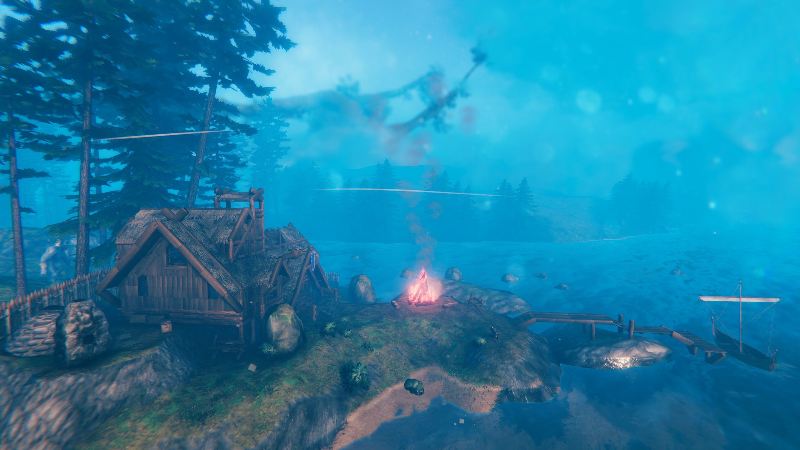 So .. awkwardly, it turns out that Edgemere was kind of far from the edge of Valheim. I remedied this by taking a boat out even further, and founding .. Rimehelm. This place is nice and remote. Unless there's some land right on the edge of the map, this has to be as far west as you can go.