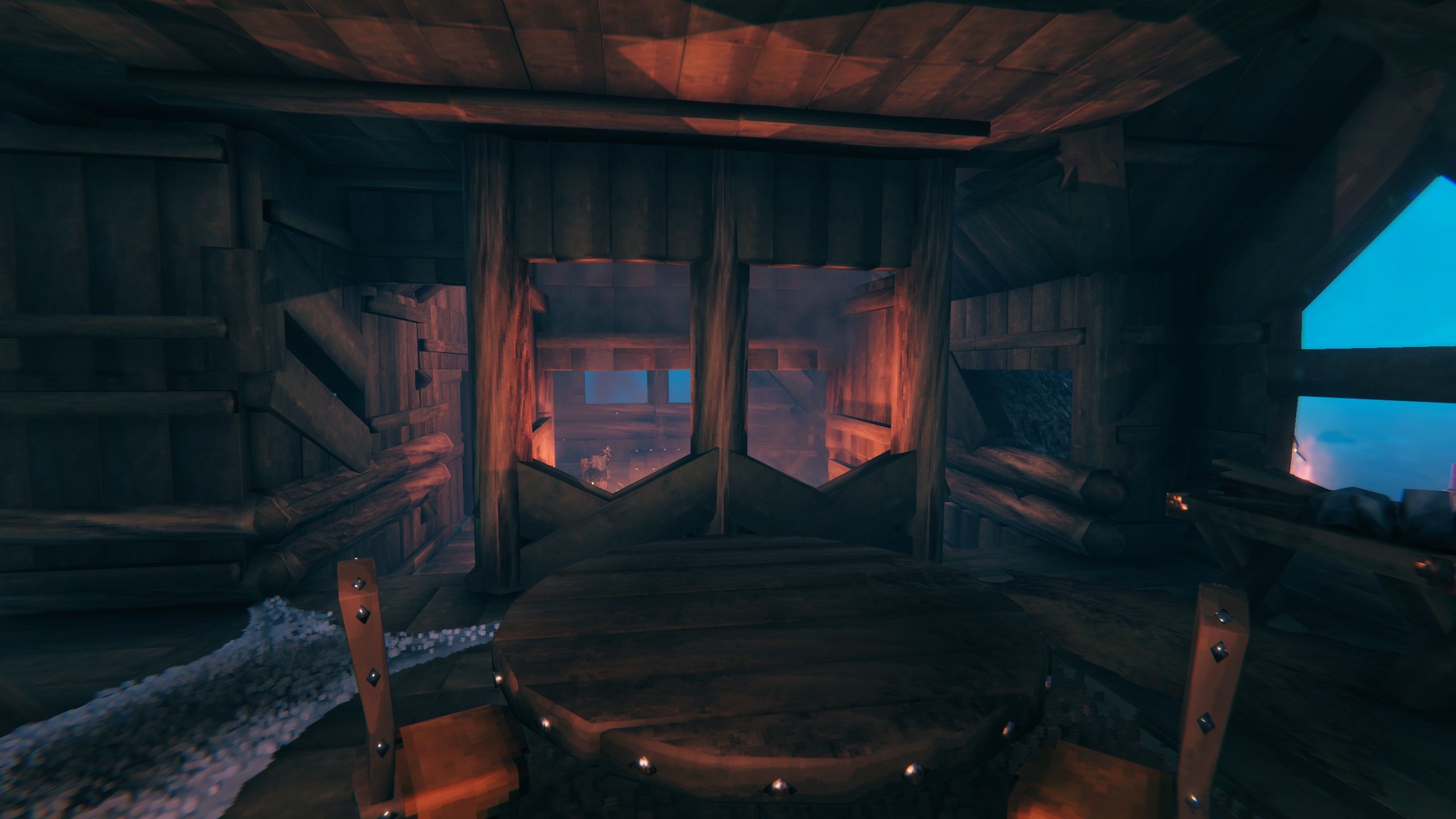 It's very rustic. There wasn't a swamp nearby so it's all wood and bronze-tier stuff. I was surprised how high you can build with just core wood though. The inside came out pretty well.
